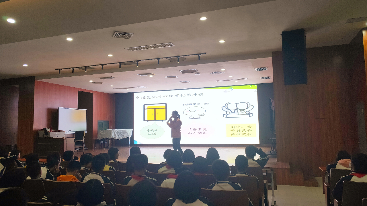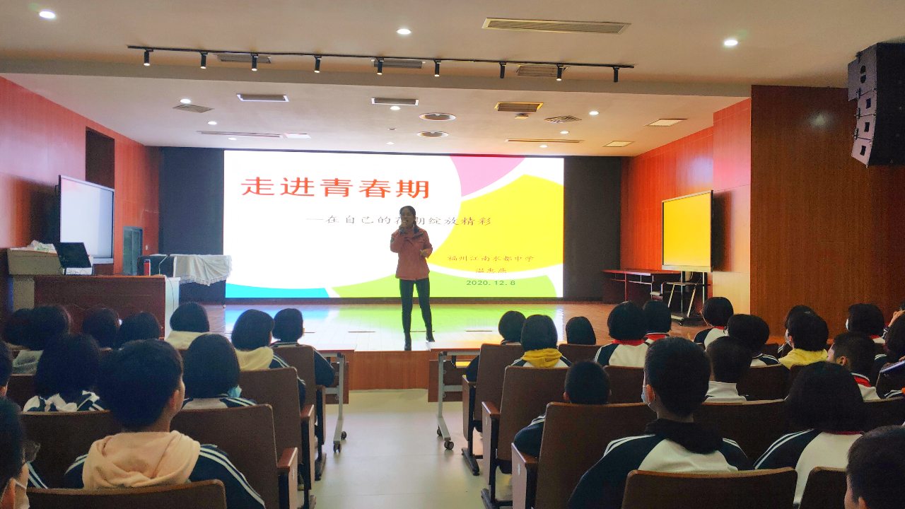 青春期是从幼年走向成年的过渡时期,青春期一个微小的选择会给人的一生带来巨大影响,有的人就此堕落,碌碌一生,有的人则认清自我,追寻梦想。为了让同学们能够顺利地完成青春期的蜕变,健康快乐地渡过自己的青春期,2020年12月8日下午第三、四节课,在初二年段的组织安排下,我校学生发展中心温惠燕老师在图书馆三楼报告厅为初二全体学生开展了一场生动而又精彩的“走进青春期——在自己的花期绽放精彩”的青春期知识讲座。